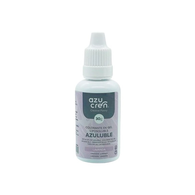 Colorante liposoluble en gel de color lavanda, de la gama Azuluble de Azucren. Ideales para chocolates.