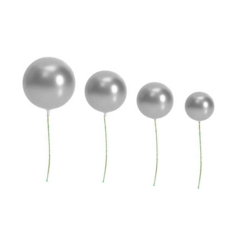 Set de 20 bolas para decorar tartas de color plateado, de distintos tamaños, de la marca Azucren.